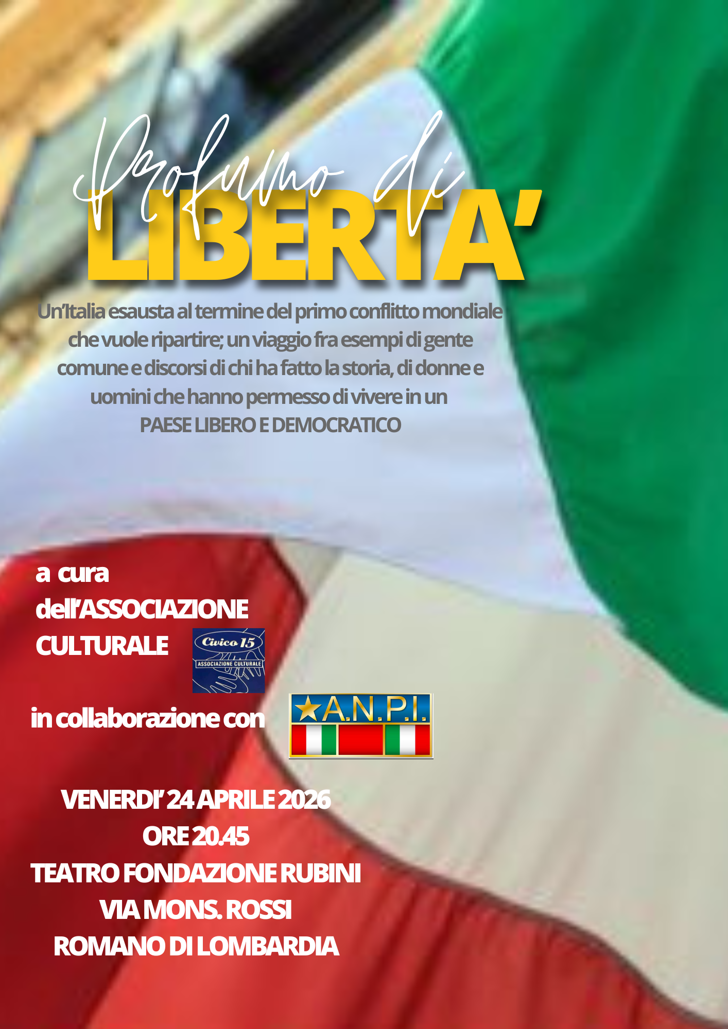 il tradizionale appuntamento di CIVICO 15 per il 25 aprile ricordando storia e momenti toccanti del nostro Paese per non dimenticare e vivere insieme un momento di intelligente convivialità